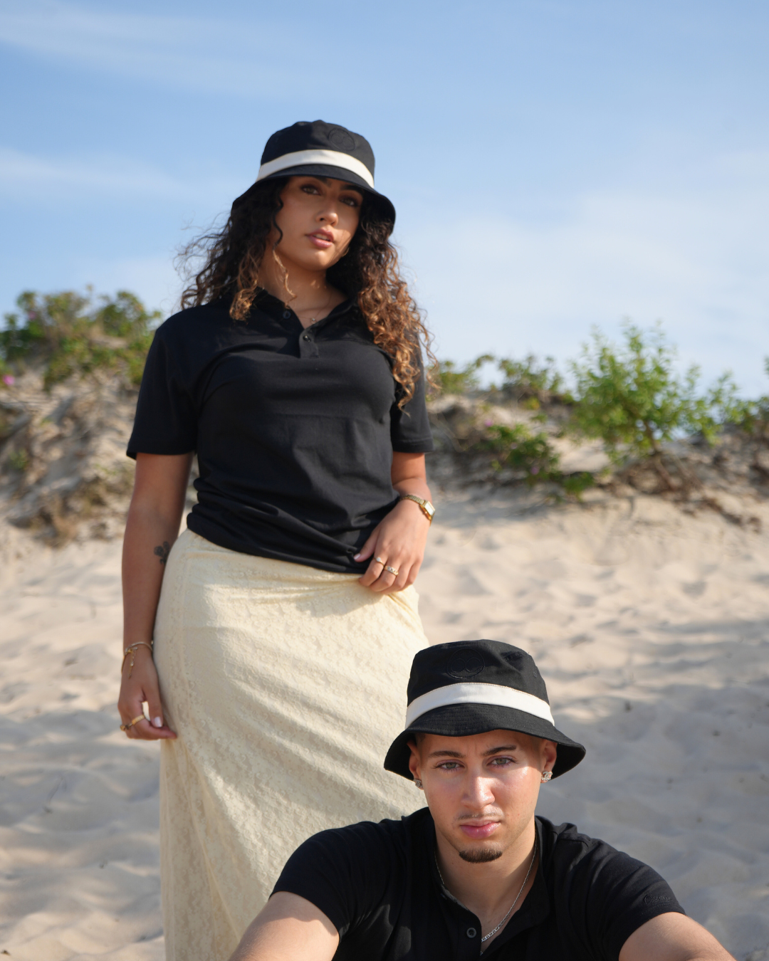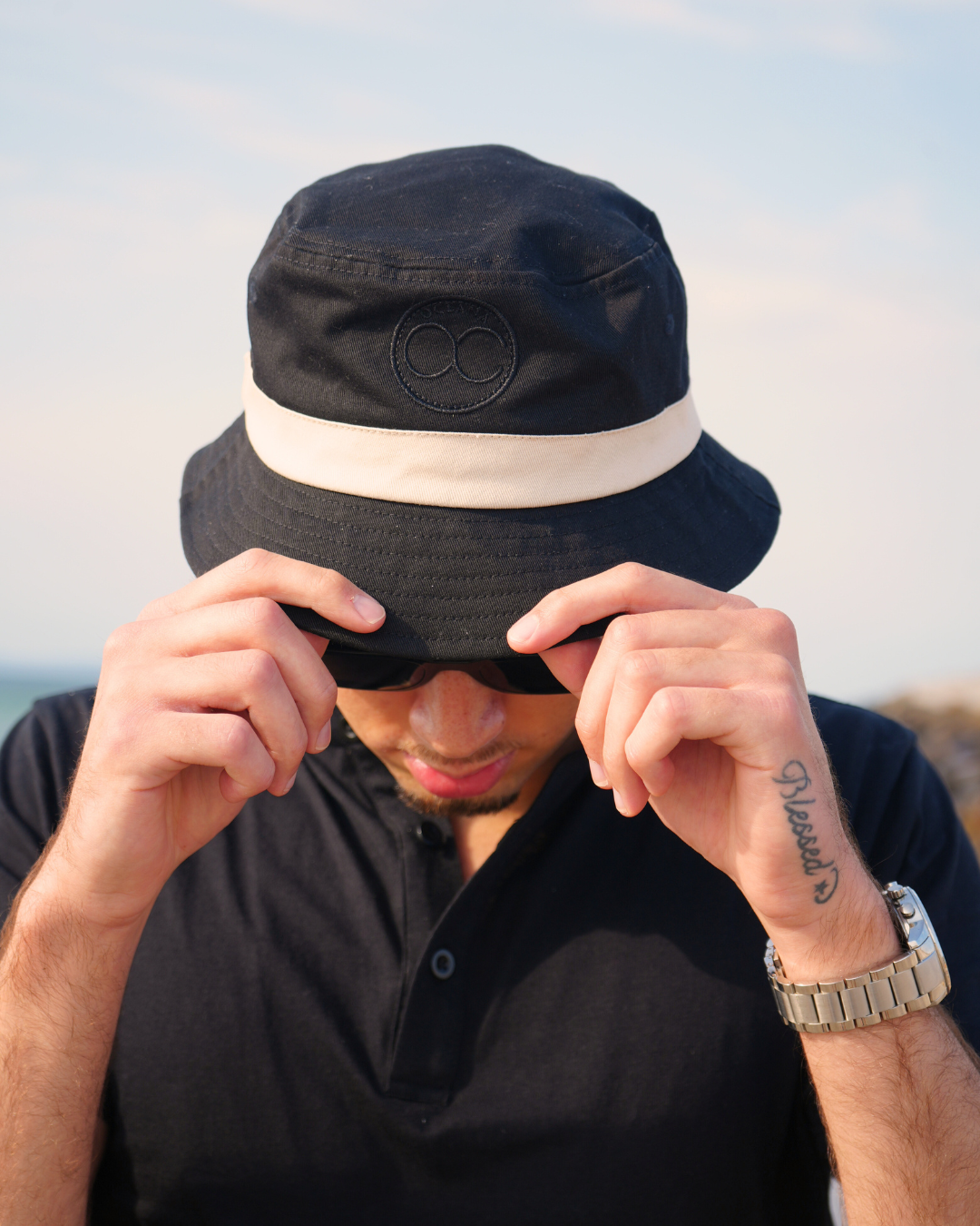 This black-and-cream bucket hat embodies the essence of effortless luxury. Featuring a clean two-tone design and a tonal embroidered OC insignia, it’s made for those who understand that style is in the details. Whether you’re oceanside or city-bound, this piece adds a refined edge to any look.